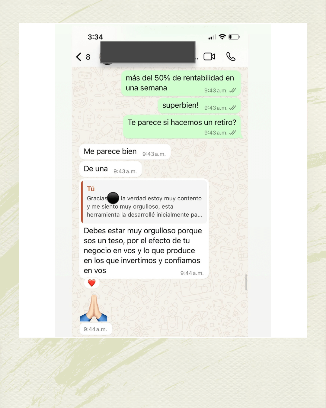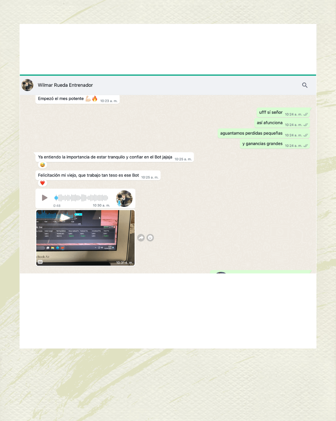 Wilmar Rueda en Colombia 100% de rentabilidad en 2 meses.
