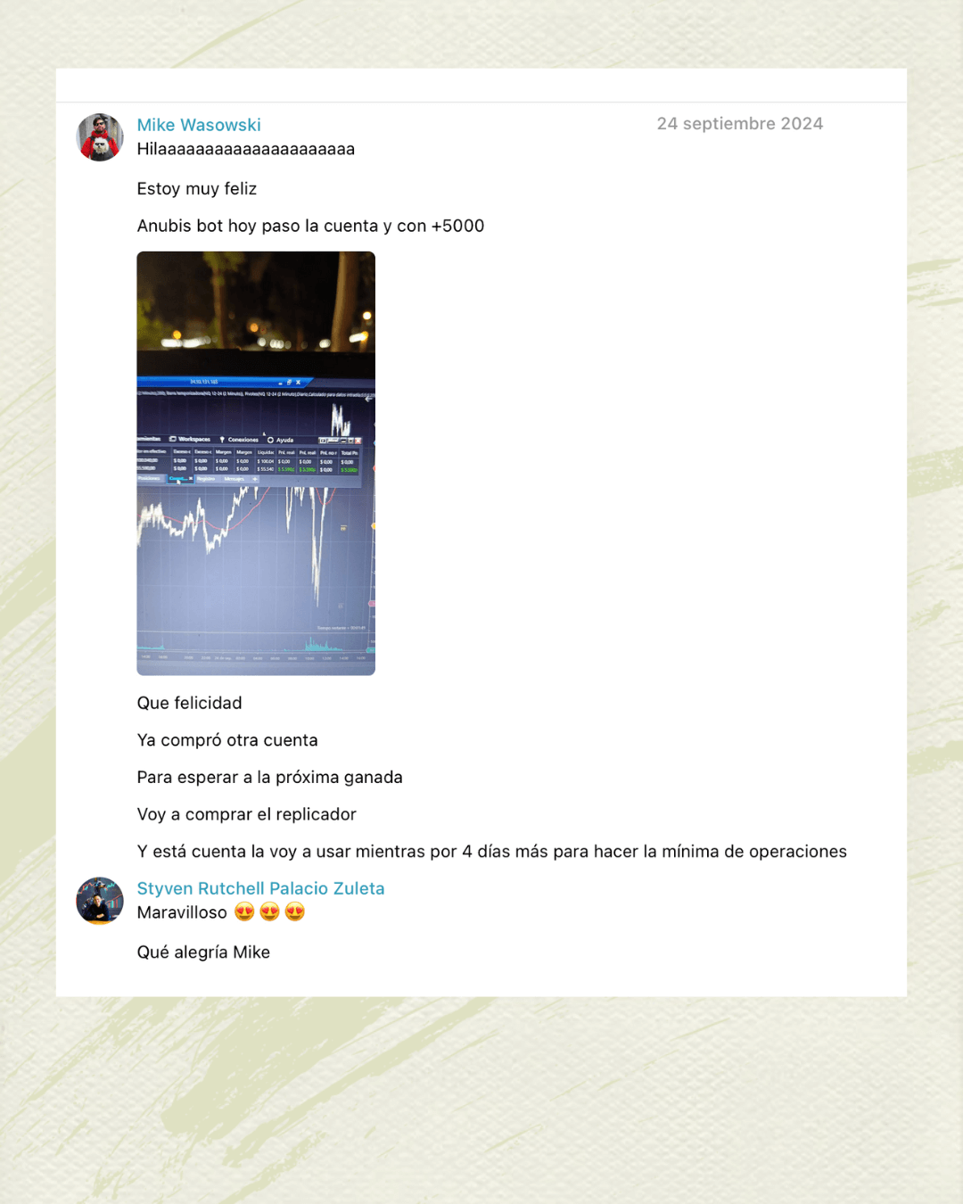 ESTOS SON ALGUNOS CASOS DE ÉXITO DE PERSONAS QUE YA ESTÁN GENERANDO INGRESOS EN AUTOMÁTICO CON ANUBISBOT Y MÍABOT